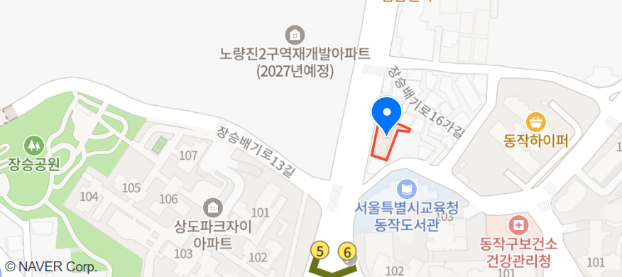 (동작도서관 옆, 상도파크자이아파트 맞은편,장승배기역 6번출구 인근)