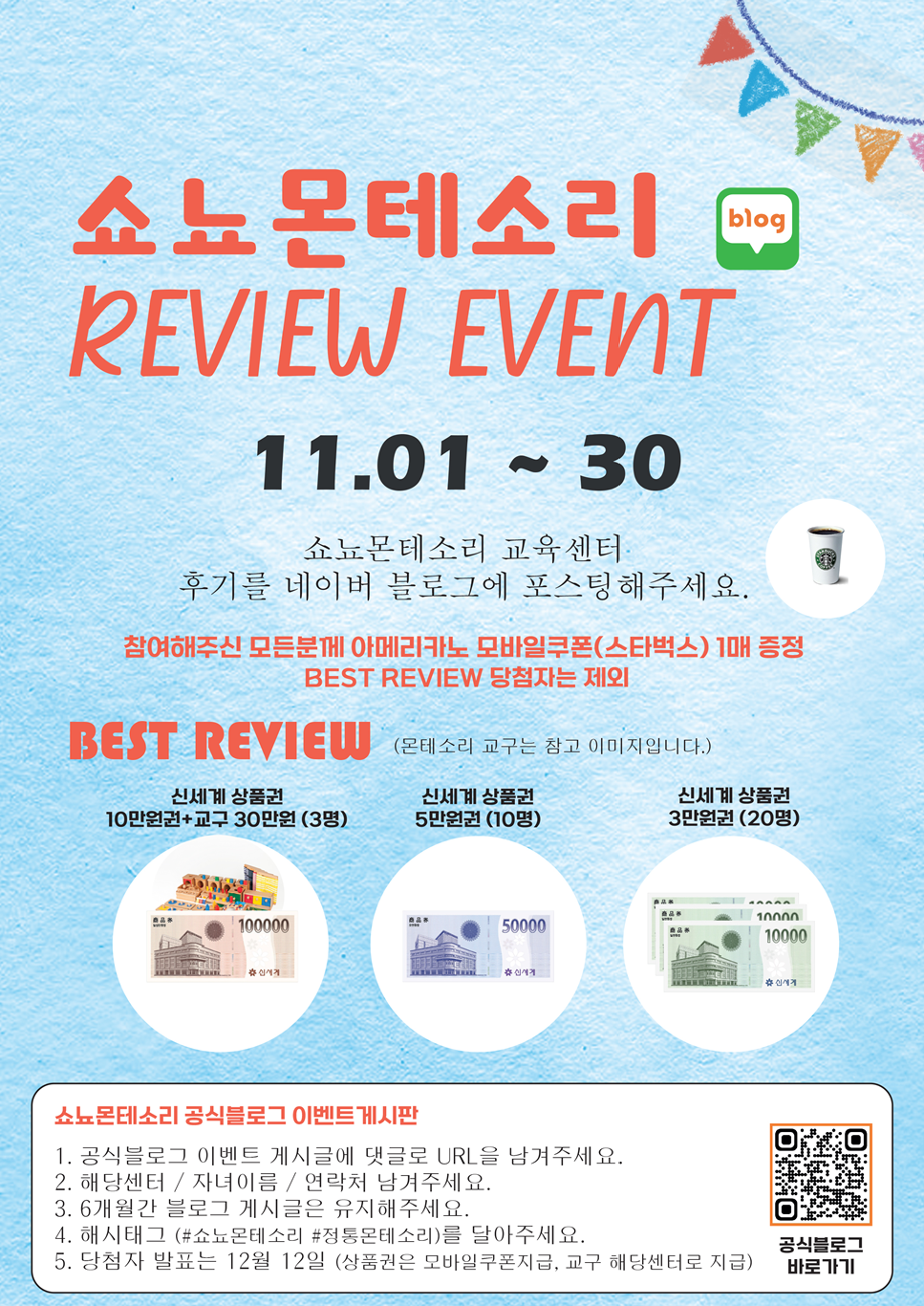 쇼뇨몬테소리 블로그 REVIEW EVENT를 시행합니다.
